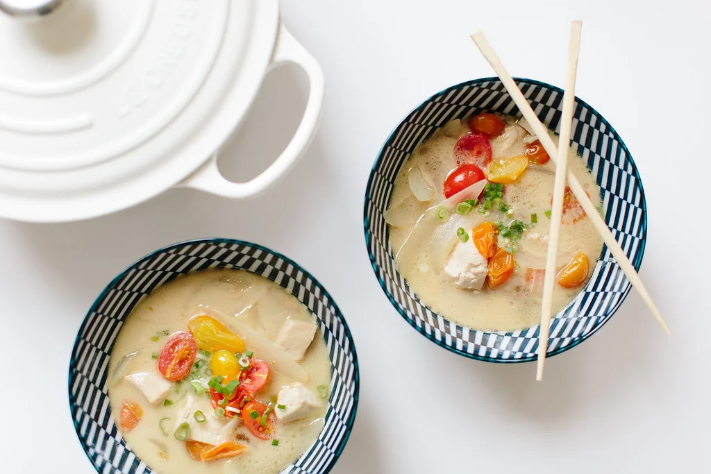 In the winter months, soup is always a favorite—you can put everything in the pot and (almost) forget about it. In 2012, my sister and I travelled to a small village in Chiang Mai, Thailand, where we learned to make one of my favorite soups: Tom Ka Gai. It’s a combination of coconut, lime, and, in this case, chicken (but you could add shrimp or go veggie instead). I even love to use it as a sauce, ladling it over rice and calling it lunch.